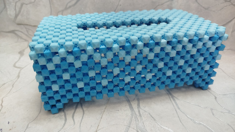 بافته شده با مهره مکعبی ترکیب رنگ آبی تیره و روشن پلیمری سایز ۱۰