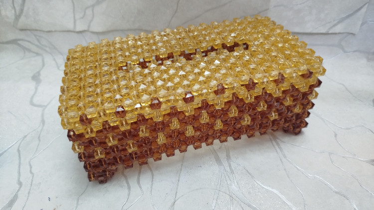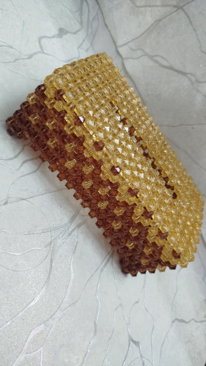 بافته شده با مهره مکعبی شفاف ترکیب رنگ قهوه ای و شامپاینی سایز ۱۰